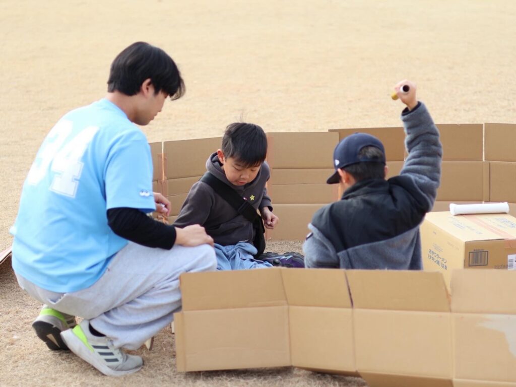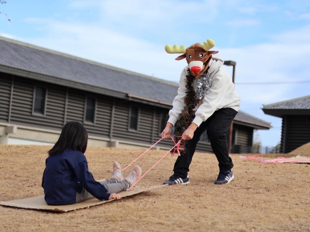 会場は広々としたグラウンド!冬の寒さを忘れるくらい、元気いっぱいな子どもたちと一緒に最高の時間を過ごしました。