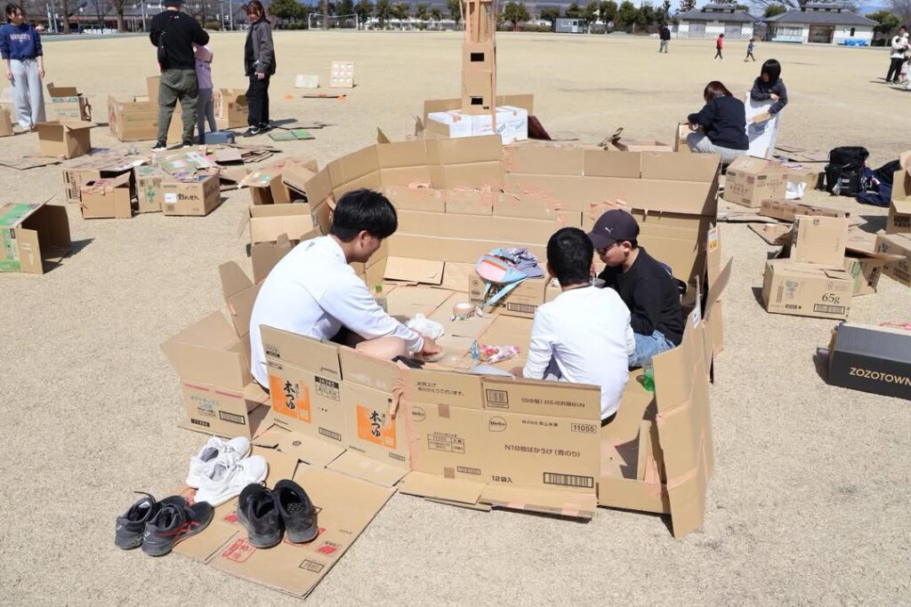 特に、印象深いのは子供たちが集まって、「ここは壁にしよう!」「入り口はこっち!」など、アイデアを出し合いながら形にしていく様子はとてもいきいきしていて、子供たちの力や可能性を改めて感じる時間となりました!